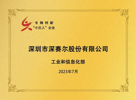 深賽爾榮膺國(guó)家專(zhuān)精特新“小巨人”稱(chēng)號(hào)