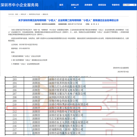 2023年7月21日, 喜報(bào)傳來(lái),在工業(yè)和信息化部組織開(kāi)展的第五批專(zhuān)精特新“小巨人”企業(yè)培育活動(dòng)中,深圳市深賽爾股份有限公司順利通過(guò)審核及公示。